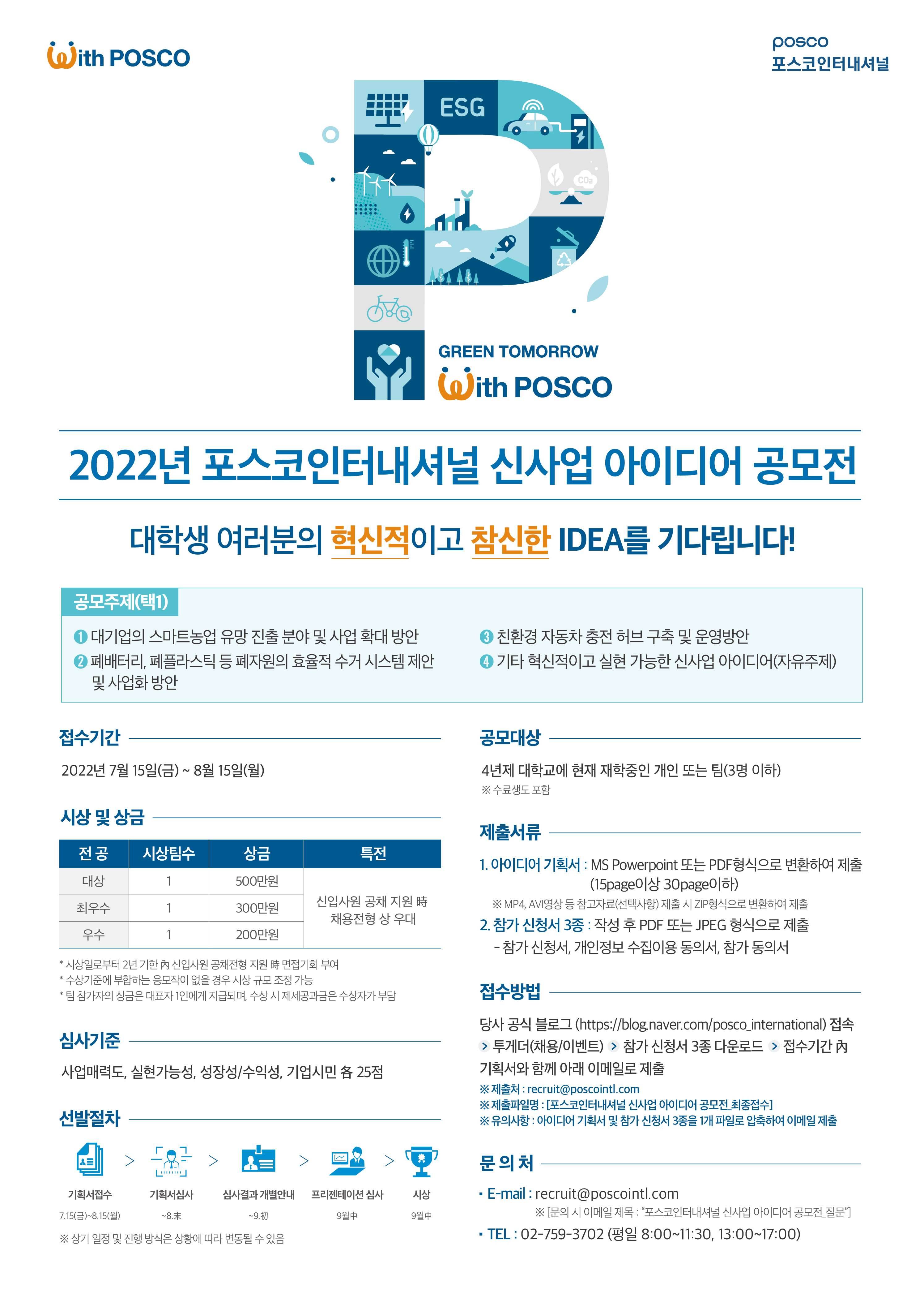 2022년 포스코 인터내셔널 신사업 아이디어 공모전 공모전 대외활동 링커리어