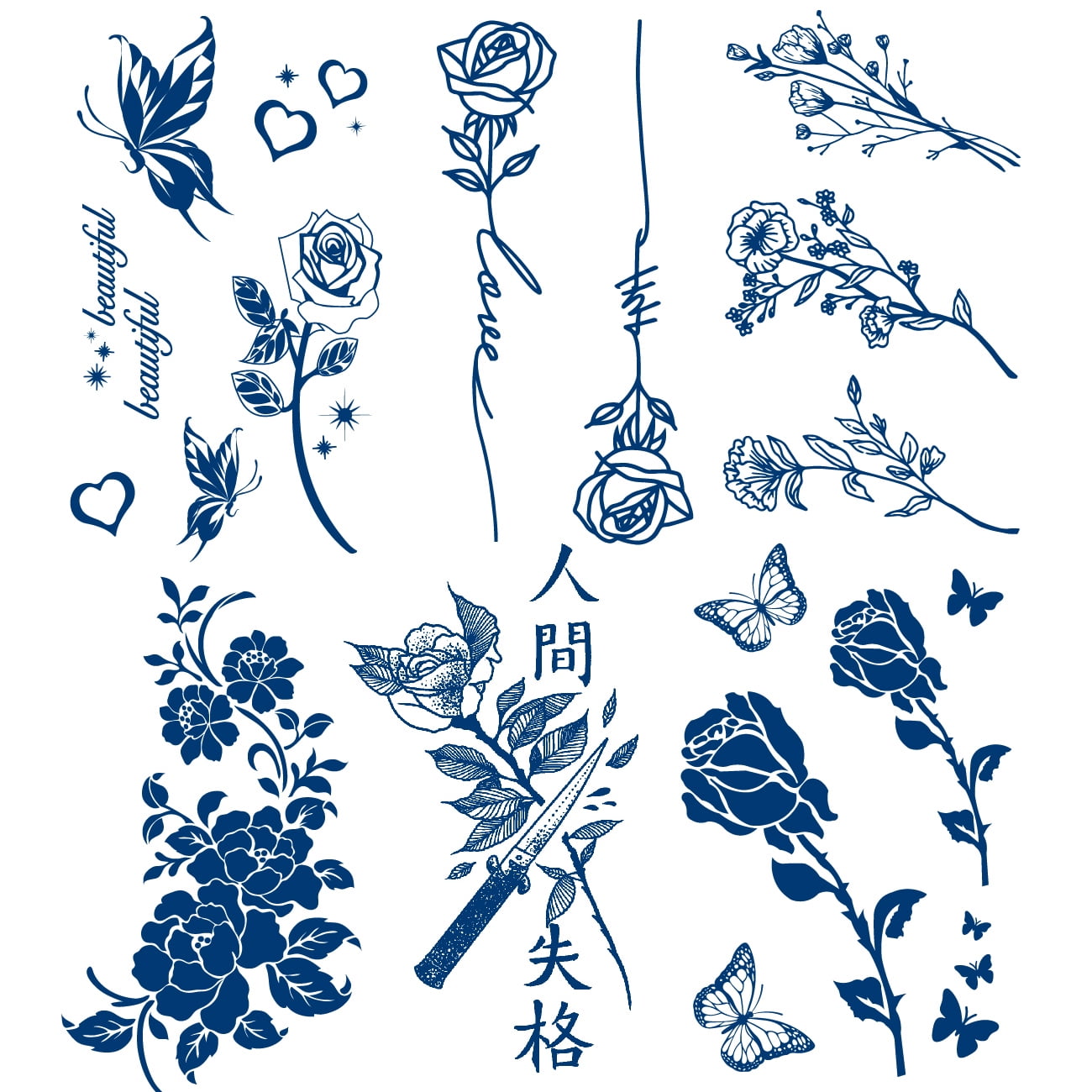 Flower Tattoos 15 Sheet Fake Rose Temorary Tattoo Stickers Walmart Com